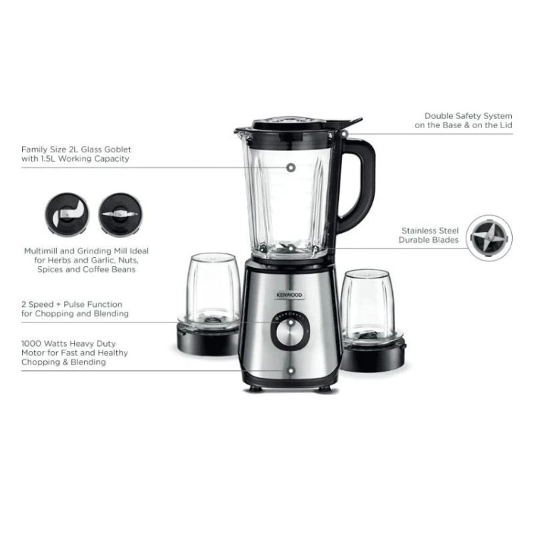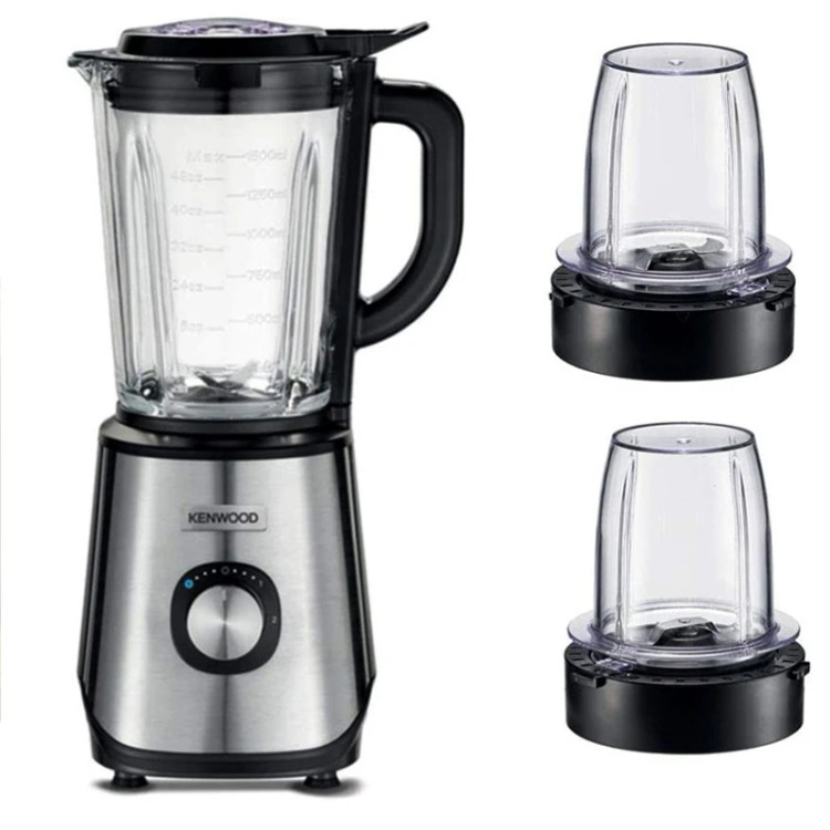 مخلوط کن کنوود مدل KENWOOD BLM45.720SS دستگاهی سه کاره از تولیدات این برند است. موتور این دستگاه با توان مصرفی 1000 وات قادر است عملیات اختلاط را به بهترین شکل به انجام برساند. دستگاه دارای تیغههایی 4 پره از جنس استیل ضدزنگ بوده که از تیزی، استحکام و دوام بالایی برخوردار است و مواد غذایی را به بهترین شکل ممکن له و ترکیب میکند.