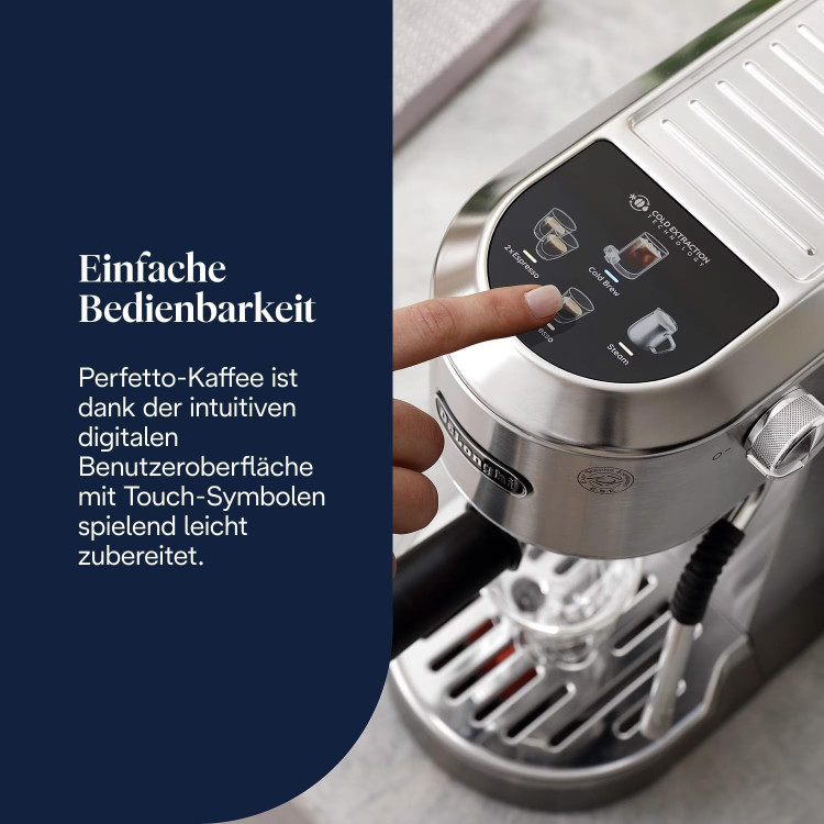 یکی از مهمترین ویژگیهای سری Dedica، طراحی فوقالعاده باریک آنهاست. اسپرسوساز دلونگی مدل EC890 نیز با تنها 15 سانتیمتر عرض، کمجا بودن را به سطح جدیدی میبرد. بدنه از جنس استیل ضد زنگ ساخته شده که هم حس لوکس بودن را منتقل میکند و هم مقاومت بالایی دارد. دکمههای فیزیکی با نور LED و رابط کاربری کاملاً شهودی، به کاربر امکان میدهند تا با چند کلیک ساده، نوشیدنی مورد علاقهاش را تهیه کند. بدون پیچیدگیهای رایج در مدلهای تماماتوماتیک، این دستگاه مناسب کسانی است که هم به کیفیت اهمیت میدهند و هم به سرعت و سادگی.