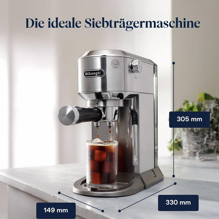 پمپ ایتالیایی با فشار 15 بار تضمین میکند که عصارهگیری اسپرسو با حداکثر طعم، رایحه و کرمای مطلوب انجام شود. این فشار دقیق، در کنار بویلر با کنترل دما، یکی از دلایل اصلی طعم بینظیر اسپرسو است. EC890 از نازل بخار استیل حرفهای بهره میبرد که قابلیت تنظیم جریان بخار را دارد. چه بخواهید فوم شیر ضخیم برای کاپوچینو بسازید و چه شیر مخملی برای لاته، این نازل به شما آزادی کامل در طراحی شیر میدهد. در مقایسه با مدلهای قدیمی Dedica، مدل Duo دارای پورتافیلتر 51 میلیمتری با توانایی نگهداشتن دو شات قهوه است. سبدهای دوبل و تک در جعبه موجودند و میتوان از پودر قهوه آسیاب شده یا پدهای قهوه (ESE pods) نیز استفاده کرد.